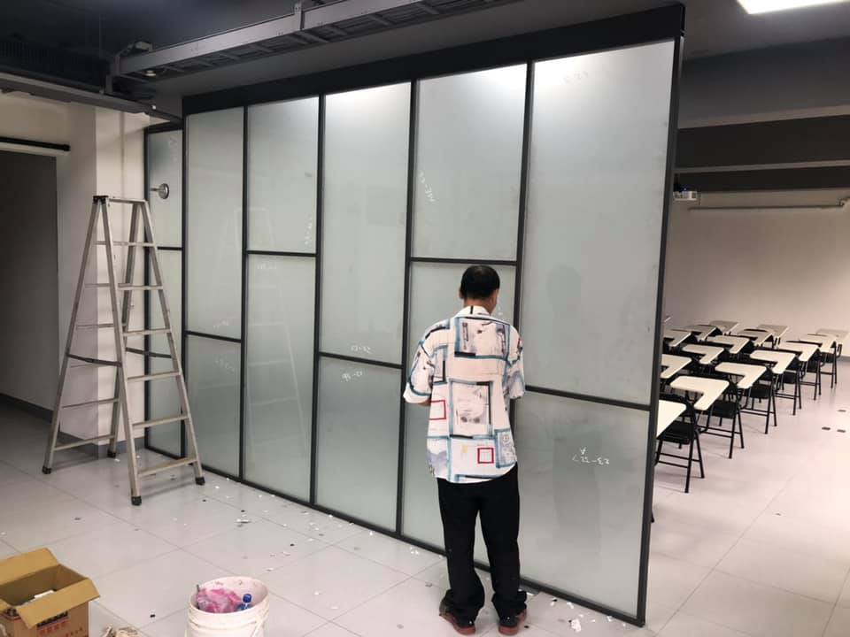 工業風隔間以金屬結構搭配玻璃牆面呈現,依空間動線規劃配置,兼顧視覺穿透感與實際區隔需求。