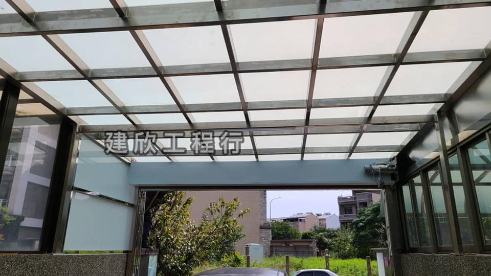 膠合玻璃採光罩結合白鐵骨架設計,依現場條件調整結構配置,確保遮雨效果與長期使用的穩定表現。